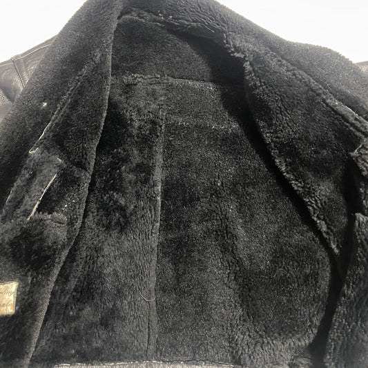 Black Shearling bomber style leather coat for men sz 52 / L, 1980s Itaky good condition