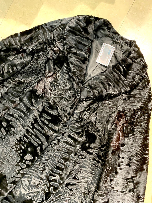 Luxurious Swakara black real fur coat, 80s Italy mint condition