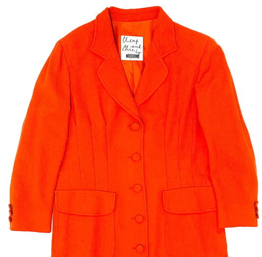 Moschino red light wool coat with satin lining, perfect for mid seasons, mint condition