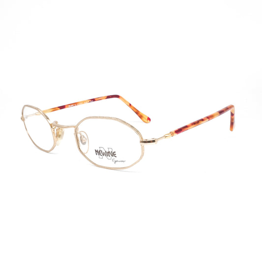 Newave mod 1585 vintage oval metallic eyeglasses frames with carved rim w brown tortoise coated temples, NOS 90s