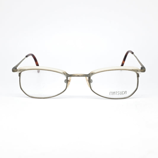 Matsuda square metallic eyeglasses made in Japan w/ carved nose bridge and temples and acetate coated browline, 1980s NOS