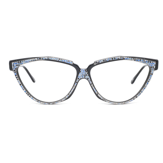 Jean-Louis Scherrer Paris black acetate cat eye eyeglasses with blue tile coated rim and temples. 90s NOS France