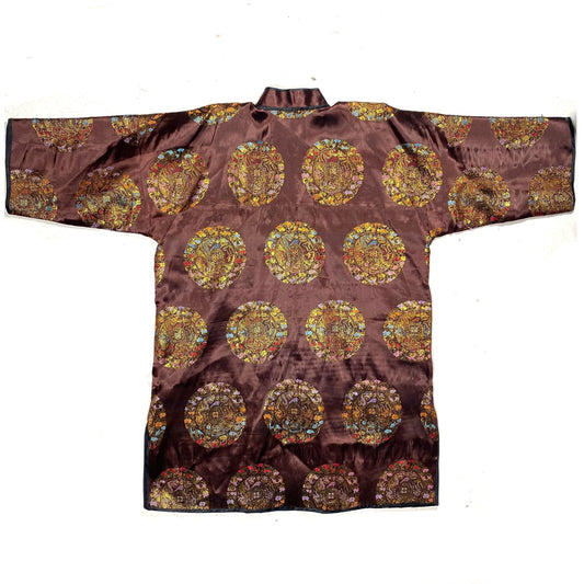 Pure silk traditional Chinese jacquard allover 3/4 kimono coat, as new, perfect sz L