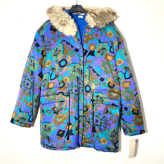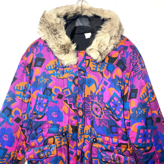Purple tones Vegan parka with a beautiful abstract print allover, 1980s sartorial made in Italy sz 44 M