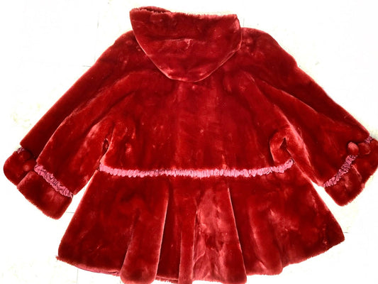 Faux Red fur hooded coat , tailor made, 80s and mint