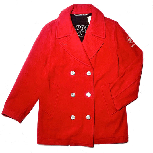 Murphy Nye red wool peacoat with warm tech lining & inox buttons, 90s Italy great condition