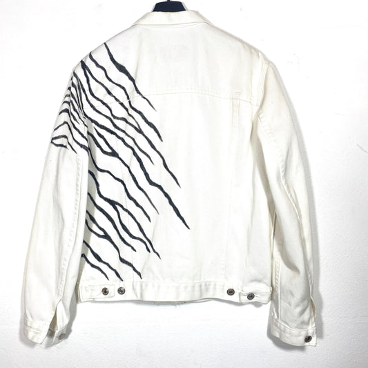 Levi’s white denim trucker jacket hand painted with zebra animalier pattern, minty and unique