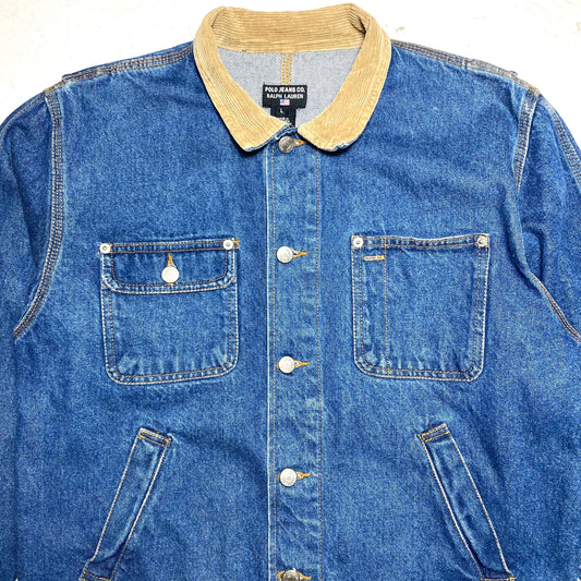 Ralph Lauren Jeans Denim jacket with beige corduroy collar, sz L, made in USA 90s Mint