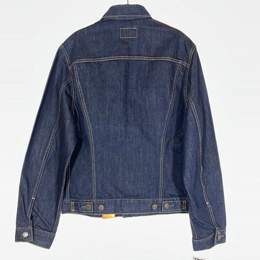 Levi’s red tab slim fit L size trucker denim jacket, dark indigo blue, new with tags, mint.