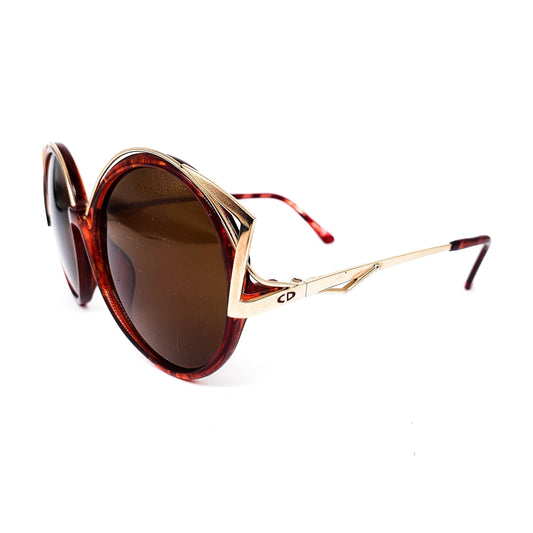 Christian Dior 2554 Oversized sunglasses with brown tortoiseshell edge and round golden rods, 80s NOS