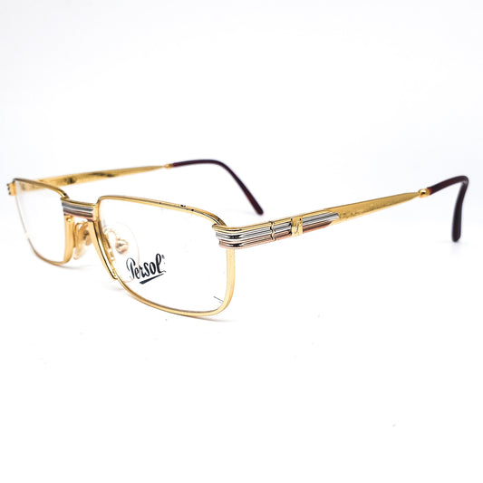 Persol Ratti Landor golden metallic square eyeglasses frames hand made in Italy with special nose bridge and hinges, 1980s NOS