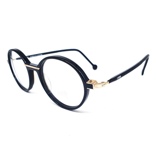 Enrico Coveri EC132 black cellulose eyeglasses frames with golden nose bridge adn hinges, 1990s NOS Italy