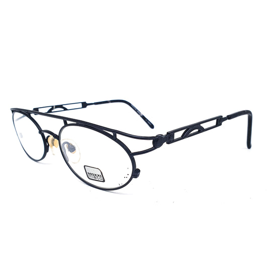 Moxxi Mato by Visibilia vintage black steampunk oval metallic eyeglasses frames with special flat browline NOS 1970s