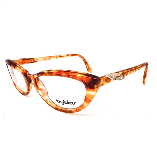 Byblos vintage classic honey tortoise cateye eyeglasses frames in cellulose acetate, NOS 90s Italy