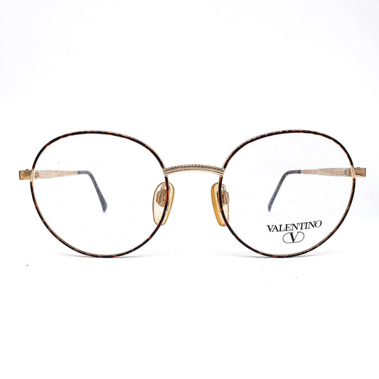 Valentino v426 geeky vintage round eyeglasses frames with slim tortoise metal rim and temples, 1980s NOS Italy