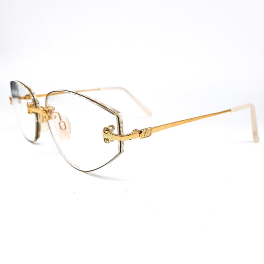 polaris vintage minimalist rimless golden metal eyeglasses frames with special sharp-cornered drop shape lenses, NOS 90s Sweden
