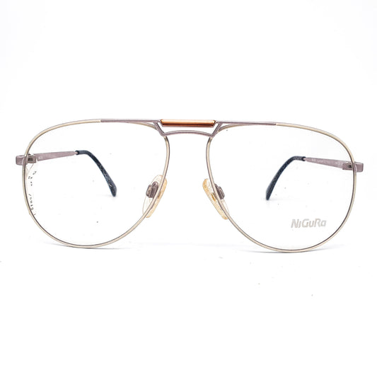 Nigura 518 vintage classic matt off-white metallic aviator eyeglasses frames 1980s NOS Germany