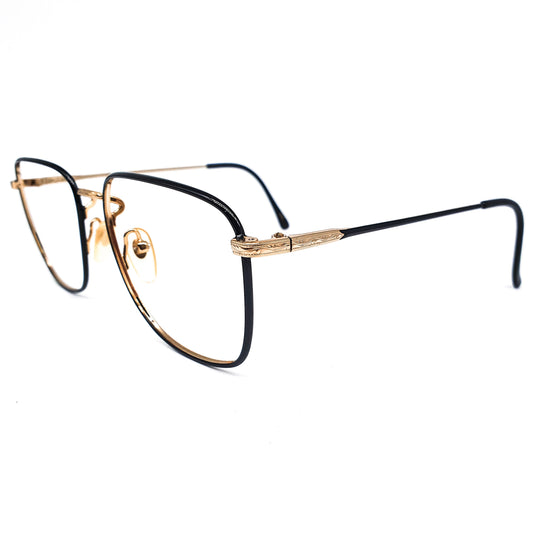 Ralph Lauren Classic XV retro geeky square golden and black eyeglasses frames, 90s NOS