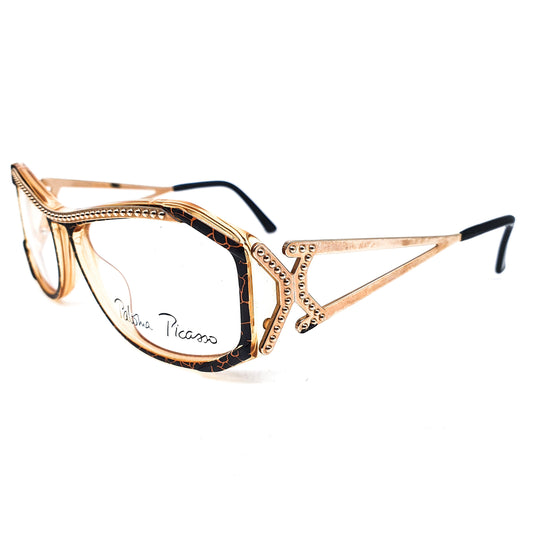 Paloma Picasso 3739 golden browline butterfly eyeglasses frames with black brown crack patterned rim made in Germany, NOS 1990s