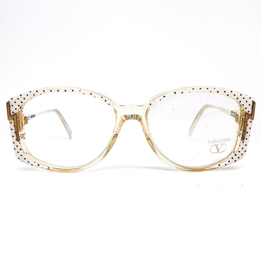 Valentino 140 Oversized white/honey oval-drop ladies eyeglasses frames with polka dots, 1980s NOS Italy