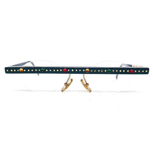 Arto oval rimless eyeglasses frames with beautiful flat browline decorated with colourful gemstones, 1980s nos