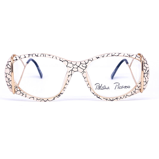 Paloma Picasso 3719 cello butterfly eyeglasses frames crack patterned rim and unusual temples made in Germany, NOS 1990s, 2 colour options.