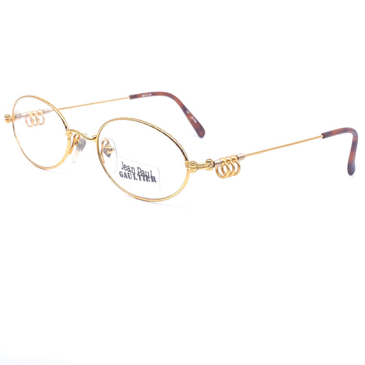 Junior Gaultier 55-5101 oval gold plated frames with coolest rings & Springs detail on the temples and hinges, NOS 90s japan.