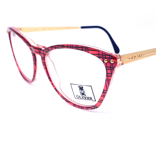 Oliver Valentino red cateye tartan print eyeglasses frames with golden temples, NoS 80s