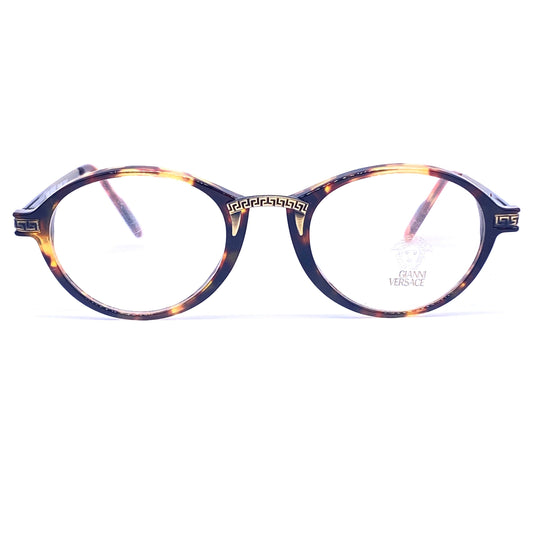 Gianni Versace G-21 round tortoise eyeglasses with carved greek antique brass temples and bridge, NOS 90s
