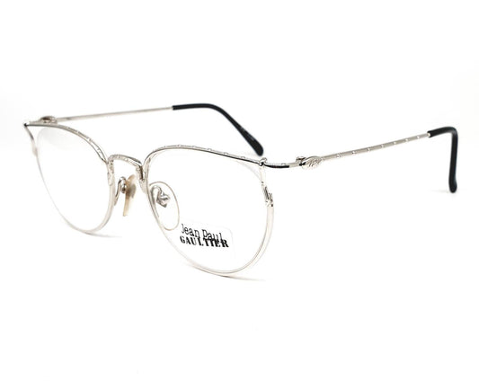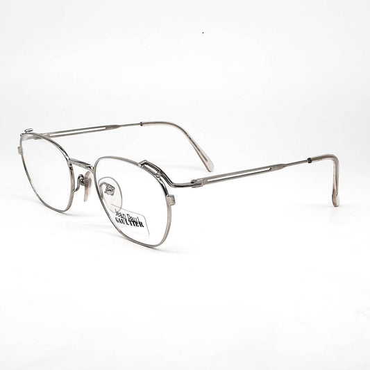 Jean Paul Gaultier 55-3177 vintage round silver steampunk eyeglasses frames Japan, 1980s NOS