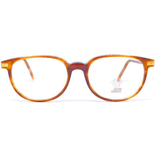 Gianni Versace V52 round tortoise frames with golden metal hinges, NOS 90s