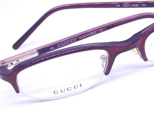 Gucci GG 1406 oval burgundy acetate half rimmed eyeglasses, 90s NOs Italy