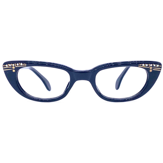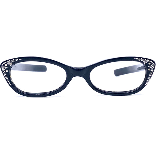 Classy black pin up/ diva cateye eyeglasses frames adorned w/ rhinestones, 50s NOS