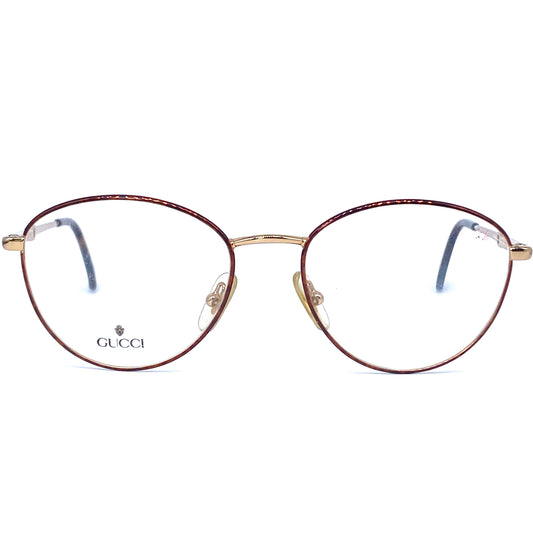 Gucci 2308 speckled burgundy gold oversized ladies eyeglasses frames made in Italy, 1980s NoS