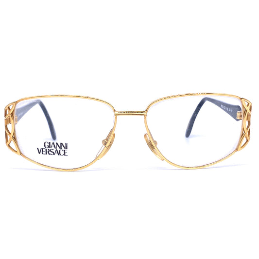 Gianni Versace V33 gorgeous oversized ladies eyeglasses, golden cutoff frame and black temples, 90s NOS