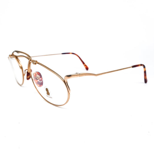 Mozart by Neostyle 2 808 drop gold metal aviator eyeglasses frames with unusual nose bridge design, 1980s NOS