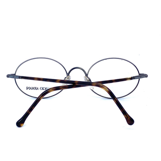 Giorgio Armani minimalist oval gunmetal frames with tortoise temples, NOS 80s Italy