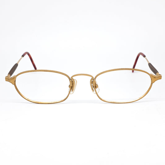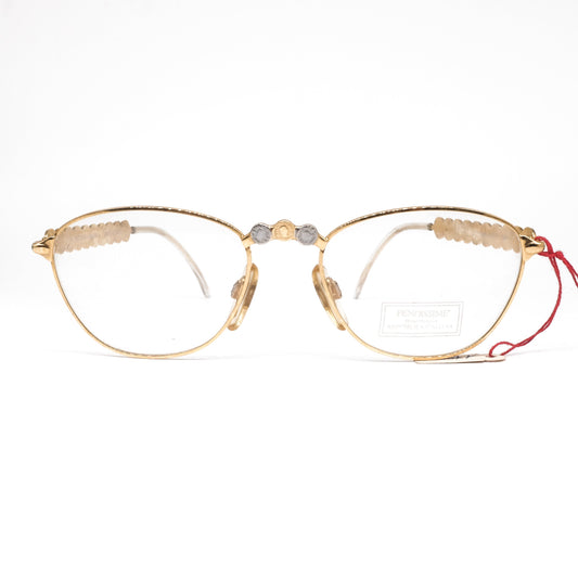 Fendi satin gold minimalistic eyeglasses frames with golden/silver coinages details made in Italy, 1980s NOs