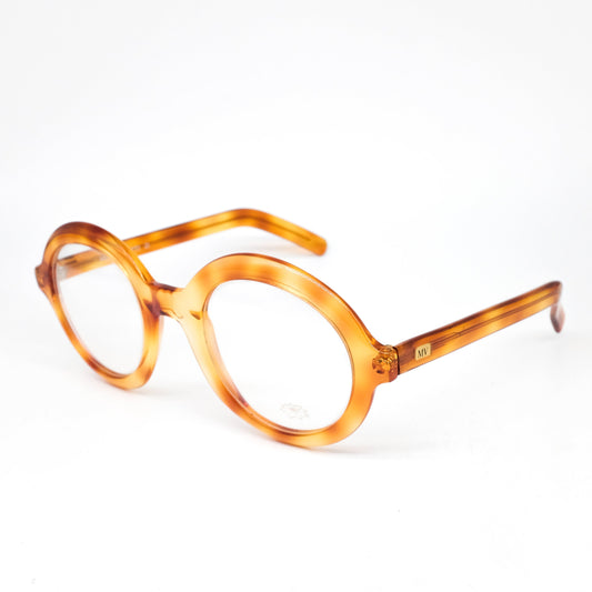 Monica Vitti large brown tortoise round acetate eyeglasses frames 80s NOS Italy