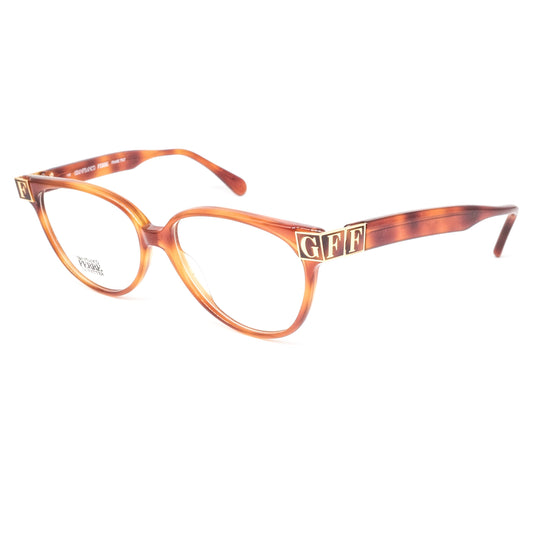 Gianfranco Ferré gff106 oval round brown tortoise eyeglasses frames with huge branding details hand made in Italy, 1980s nos