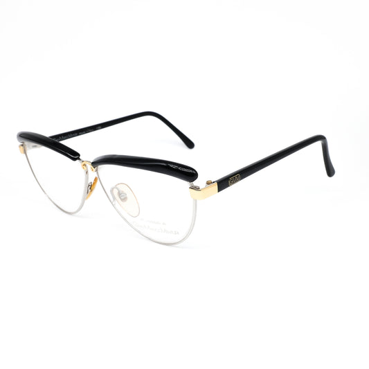 Gian Marco Venturi 018 013 silver metallic cateye eyeglasses with gold and black details, NOS 1990s Italy