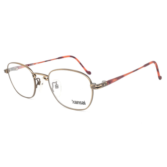 Kansai classical and nerdy square cable rim eyeglasses in gold and brown tortoise temples made in Japan, 1980s NOS