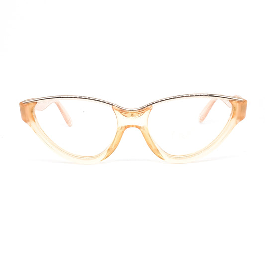 Christian Lacroix vintage translucent orange acetate cateye eyeglasses with shiny gold browline and special wavy temples, 80s nos Germany