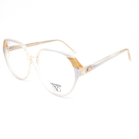 Valentino 018 Oversized round butterfly pearl white eyeglasses frames with golden details, 1980s NOS Italy