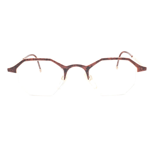 Rodenstock 7098 unusual semi rimless eyeglasses frames in gold metal/leopard, made in italy 80s NOS