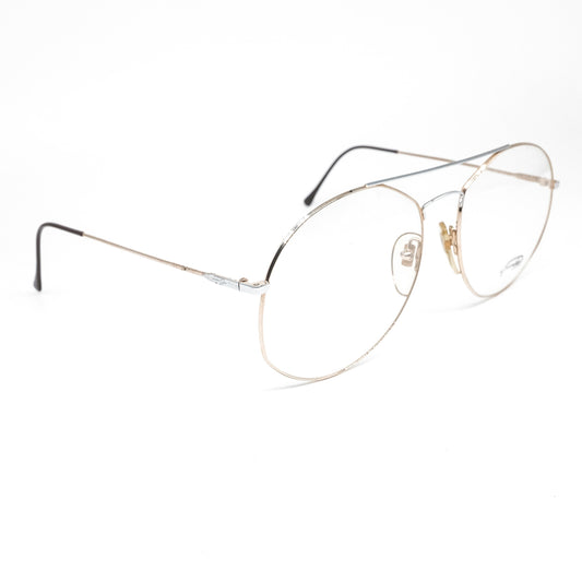 Menrad 390-110 oversized silver/gold metallic eyeglasses frames with cut off hinge design 1980s NOS