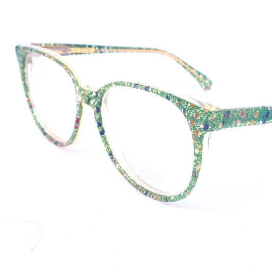 Missoni M507 iconic real fabric inlaid square unisex frames, green base with multicolor dots, NOS 80z