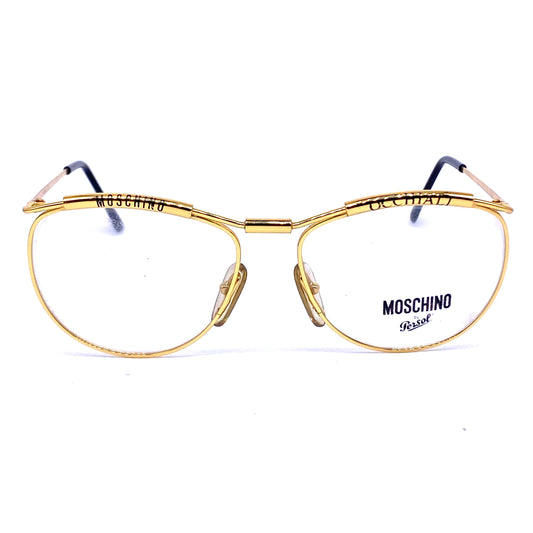 Moschino-Persol M18 golden metal frames with printed brows, 1980s NOS Italy