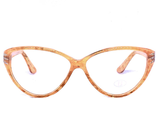 Fendi light amber marbled cateye eyeglasses with rhinestones and F logo