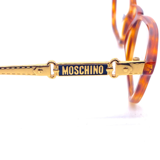 Moschino Persol square demi blonde eyeglasses with carved golden metal belt/buckle temples, so cute and minty